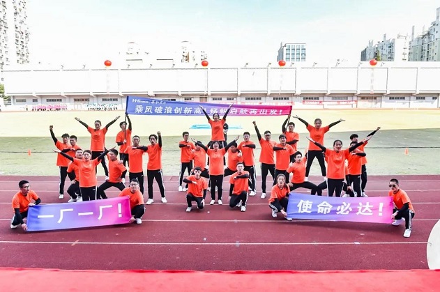 在顶立“芯”天地项目中,5名选手需要用细杆撑起又大又薄又轻的圆盘道具,跑过约30m距离冲到终点,不仅考验选手们的平衡力和掌控力,更考验他们的默契性。最终,华虹宏力3队、研发中心队、华虹科技队、上海华力3队等队伍发挥出色,分获项目第一、二、三、四名。