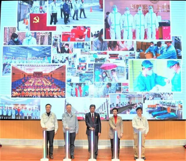 在抗疫保产一周年纪念活动中,全体与会人员共同观看了《我们在一起》抗疫保产视频。
